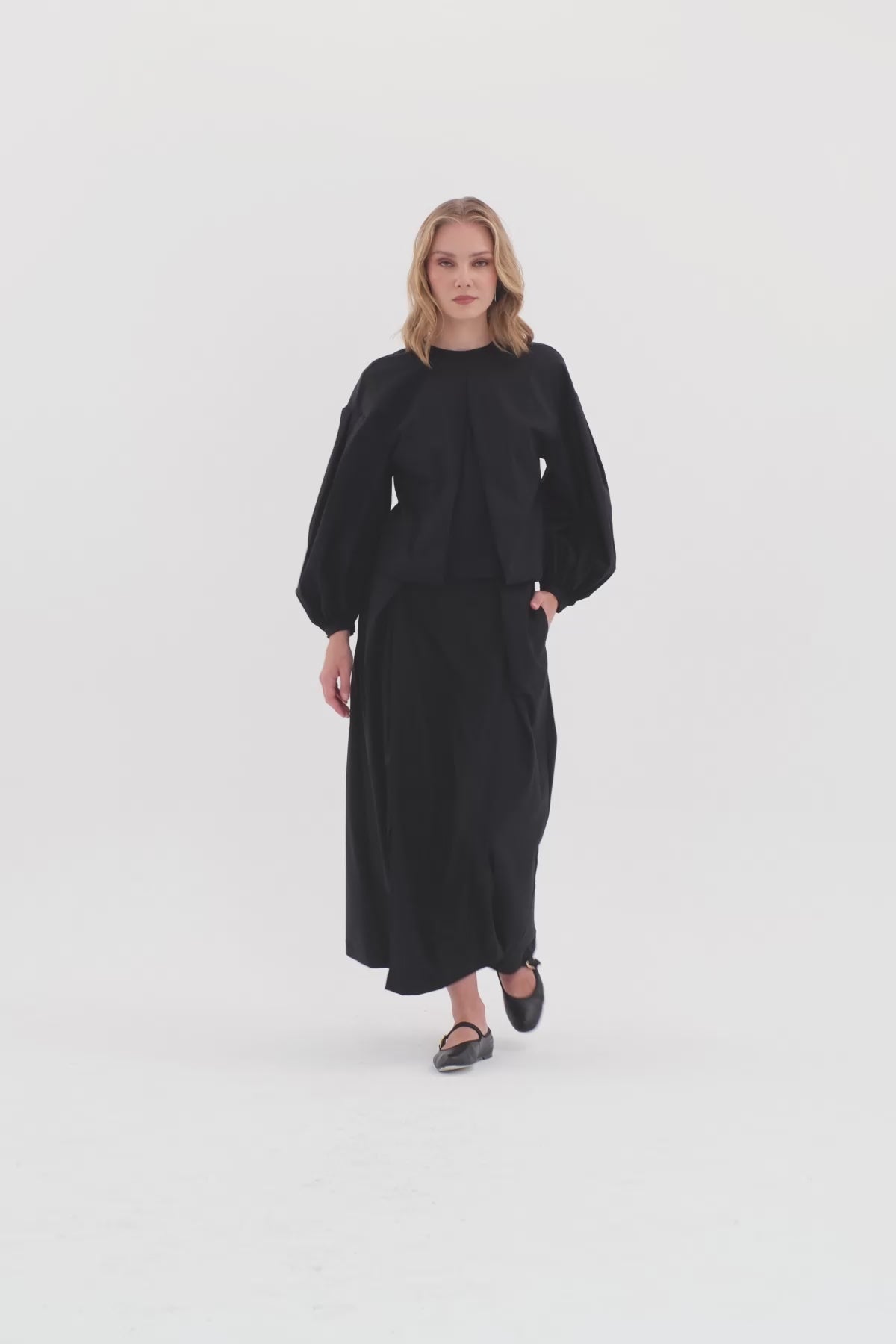 Arkası Gizli Fermuarlı Önden Pile Detaylı Etek