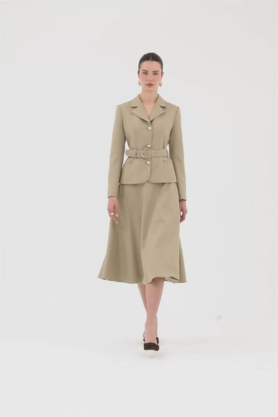 Düğmeli Kemerli Ceket Ve Etekli Takım