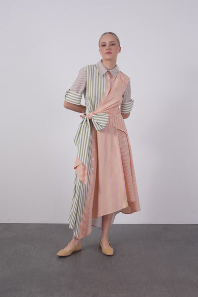 Gömlek Yaka Kısa Kollu Uzun Elbise
