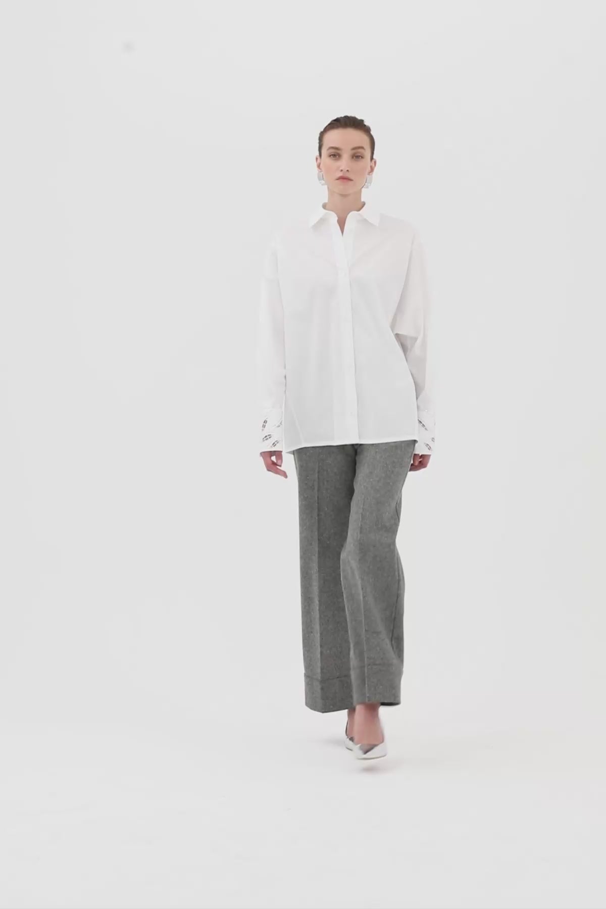 Kolları İşleme Ve Nakış Detaylı Gömlek