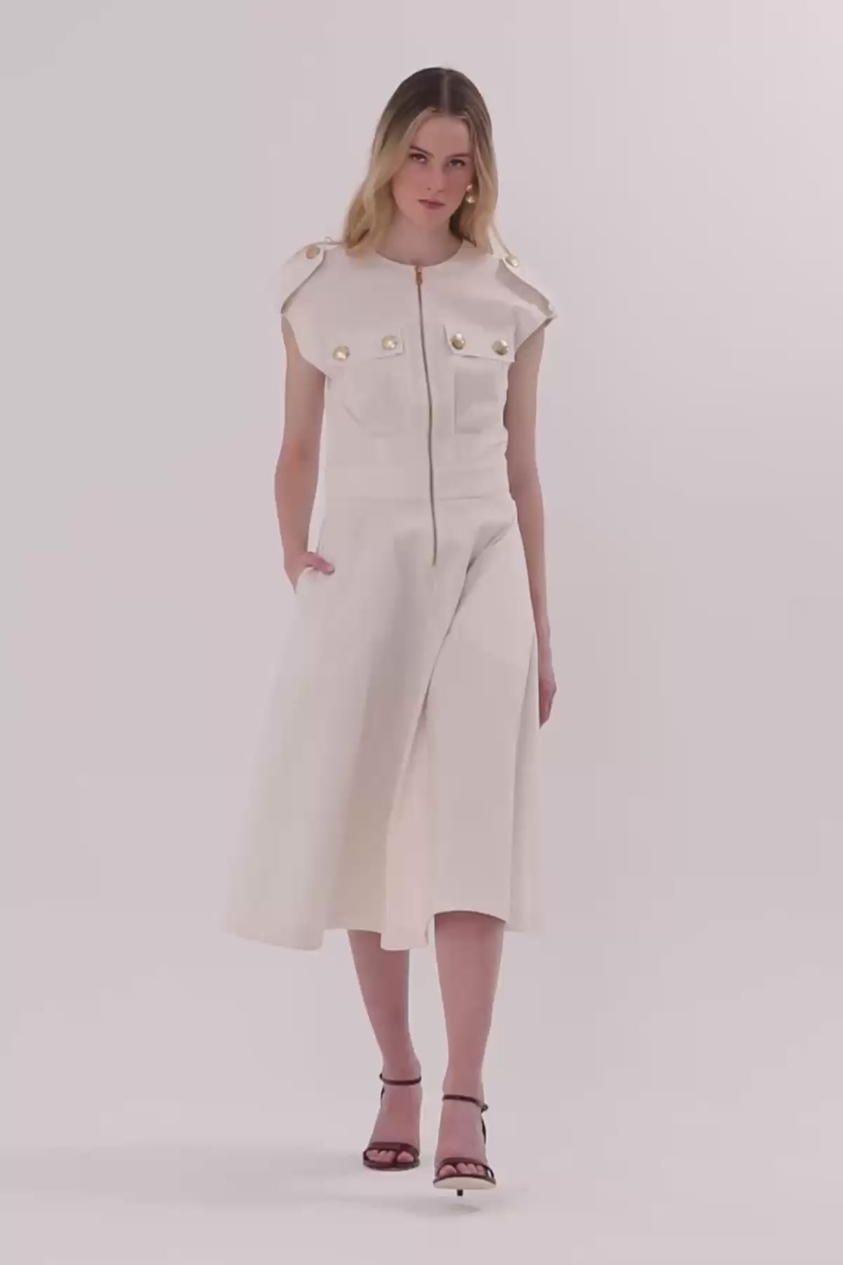 Omzu Apoletli Midi Elbise