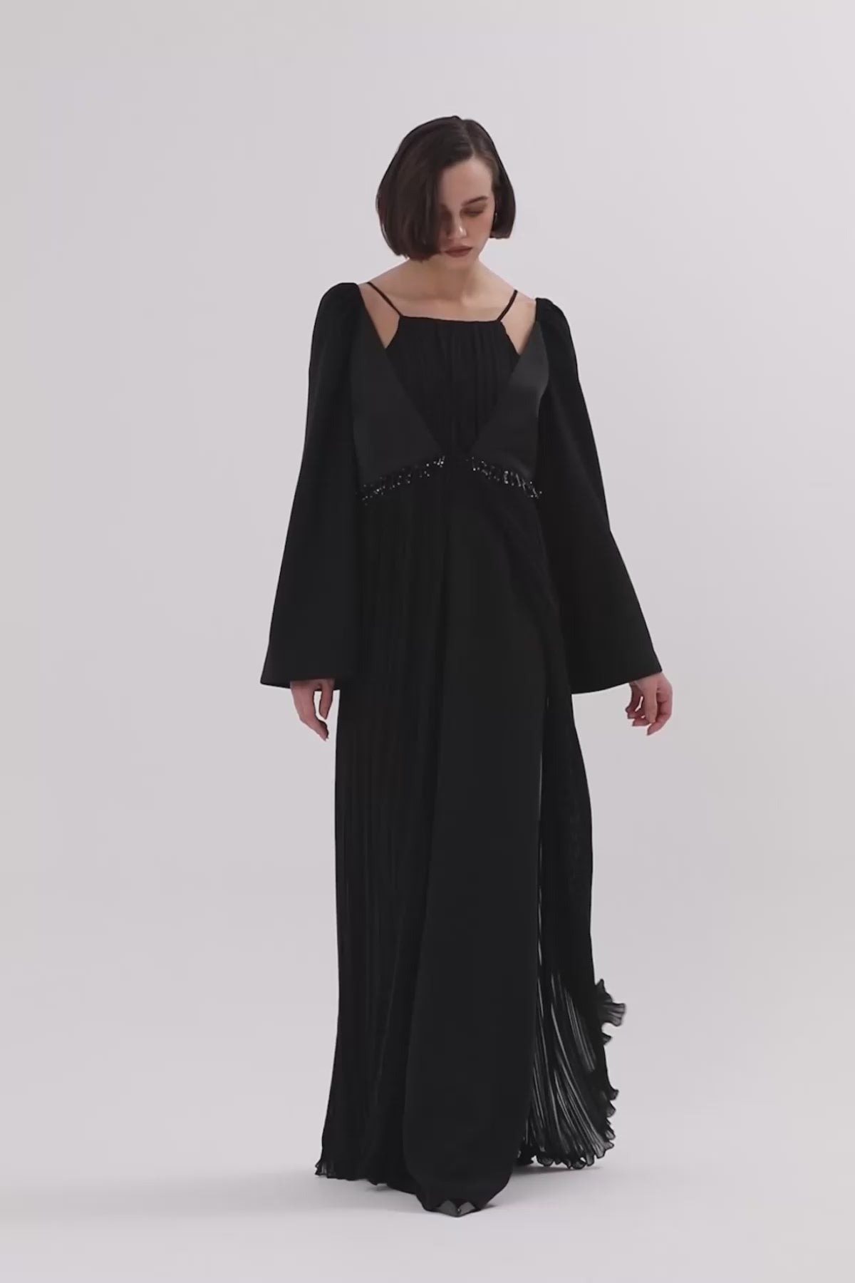 Piliseli Boncuk İşlemeli Uzun Elbise