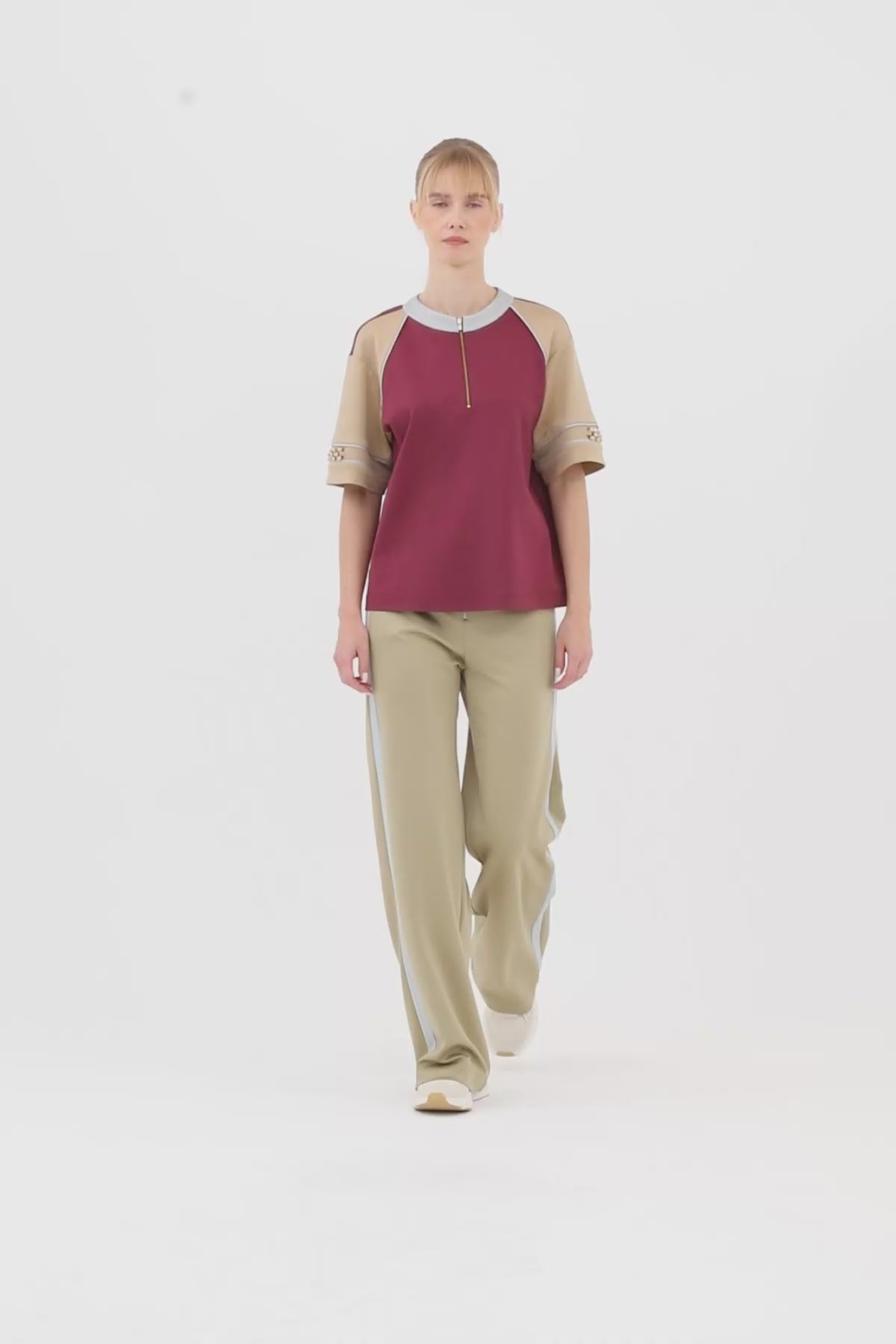 Yakası Fermuarlı Kolları Aksesuarlı Bluz