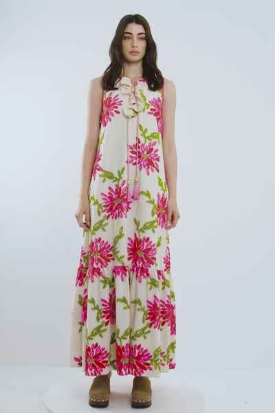 Yakası Fırfırlı Desenli Elbise