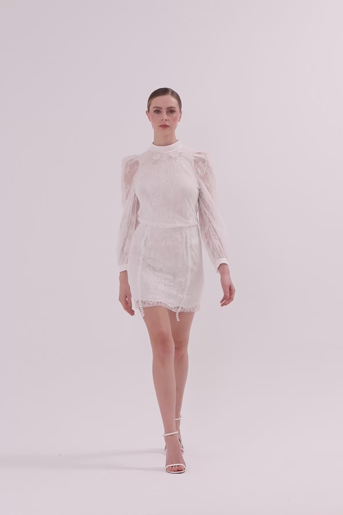 Yakası İşlemeli Dantel Kumaş Kısa Elbise