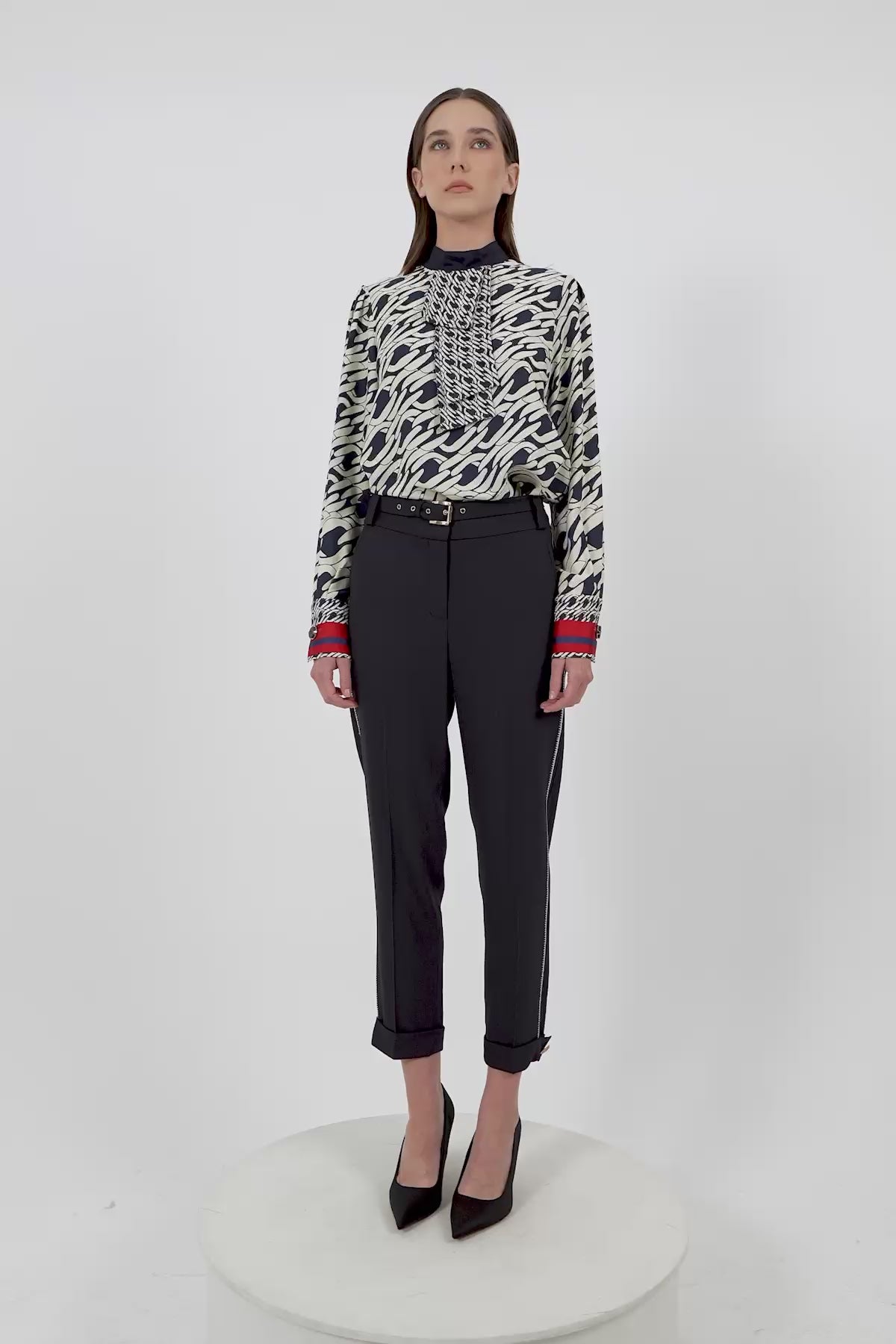 Yan Dikişler Nakış Detaylı Kemerli Pantolon