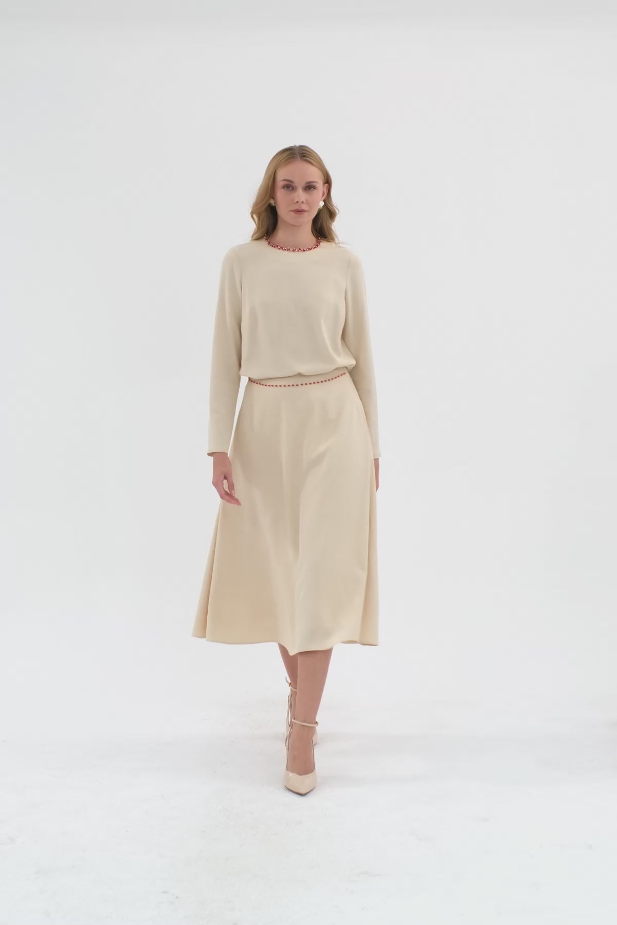 Yandan Fermuarlı Boncuk İşlemeli Kloş Etek