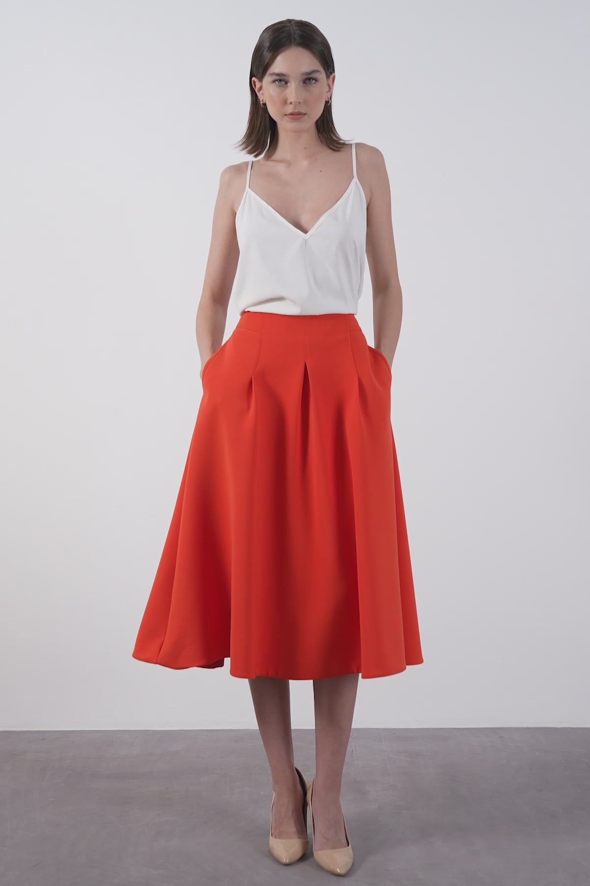 Yüksek Bel Mercan Kloş Etek