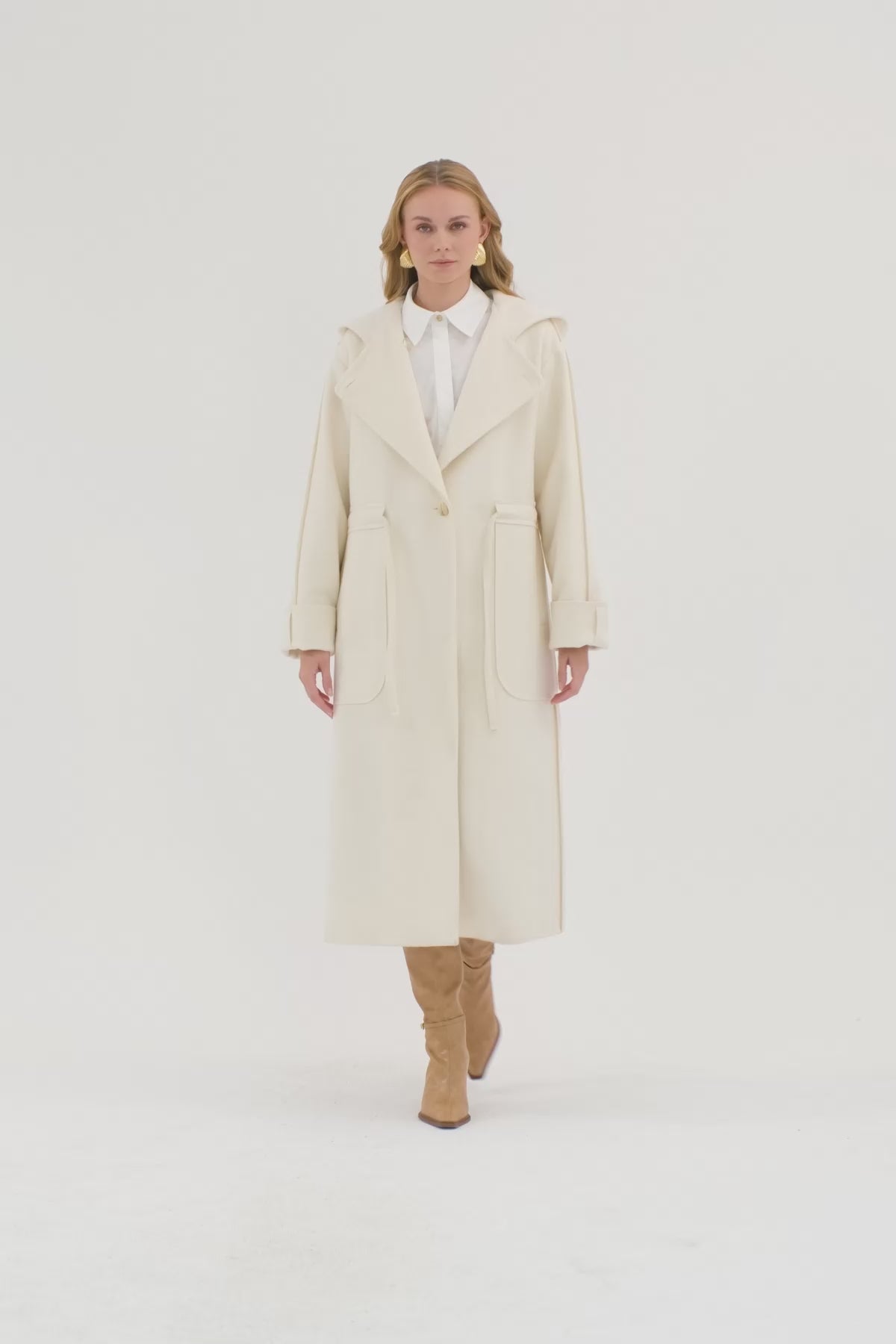 Kapüşonlu Biye Detaylı Bağlamalı Kaban