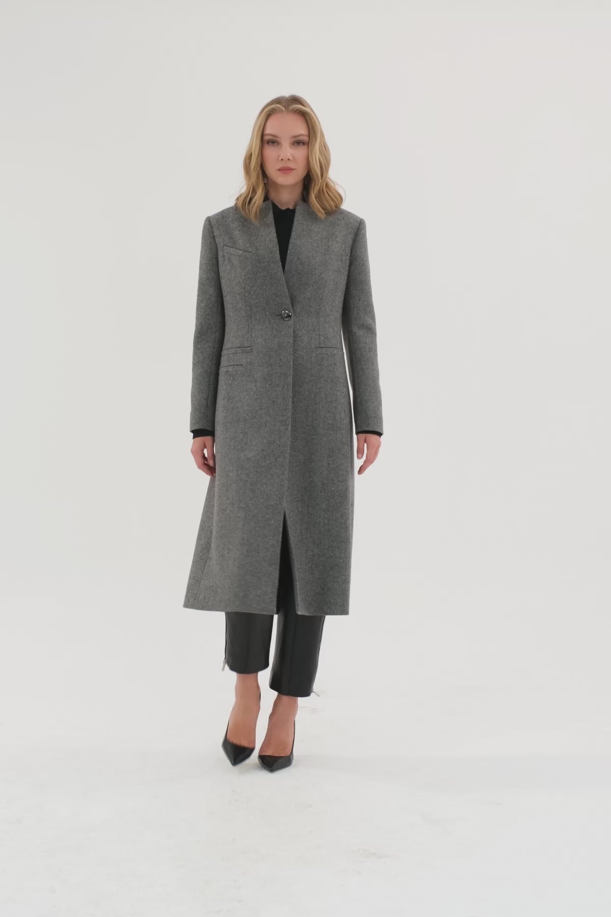 Hakim Yaka Düğme Detaylı Tam Kalıp Kaban