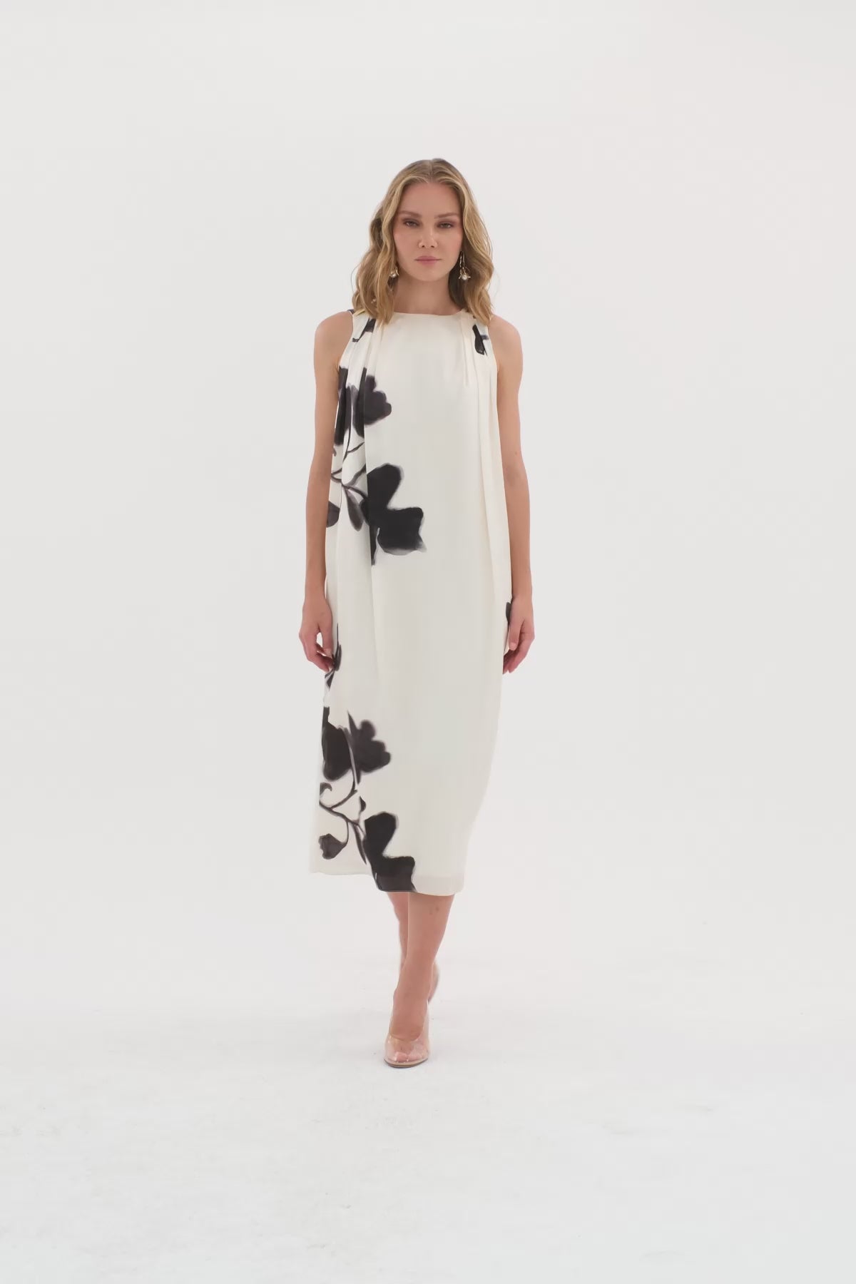 Yuvarlak Yaka Uzun Kollu Pileli Elbise